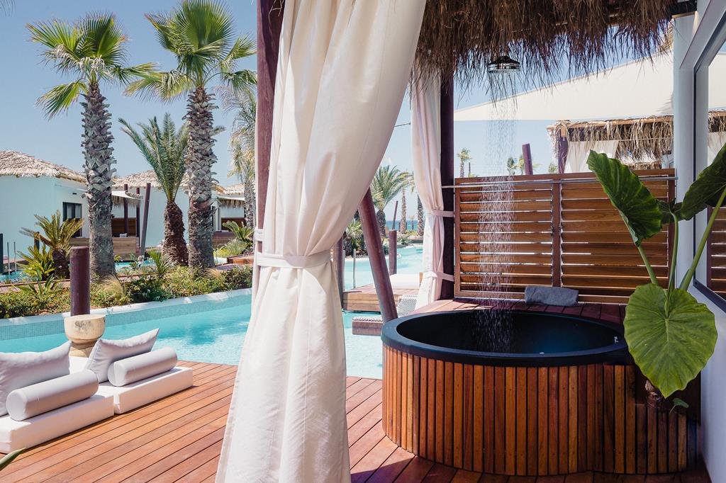 Vlak bij het centrum van Analipsi, Uniek zwembad in lagunestijl, Strand op 300 meter, Smullen in goede restaurants, Kies een kamer aan het water, Adults Only & inclusief transfers.