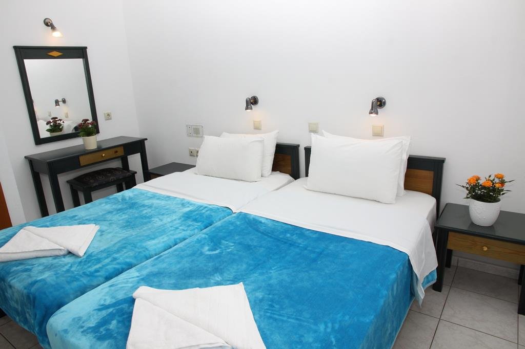 Heerlijk onder een parasol, liggend op een ligbedje bij het zwembad genieten van een relaxte dag. Dat klinkt fijn! Het appartementencomplex Sylvia heeft een rustige ligging tegen een heuvel vlak bij Koutouloufari en het centrum van Chersonissos. Dat vind je wel zo prettig, want je zoekt de gezelligheid van Chersonissos wel op als je daar zin in krijgt. De kamers bij Sylvia zijn eenvoudig maar alles wat je nodig hebt is aanwezig. Op vakantie ben je toch het liefst zoveel mogelijk buiten, dus het is die scherpe prijs wel waard. Oh, en een glimp van de zee krijg je er ook bij!