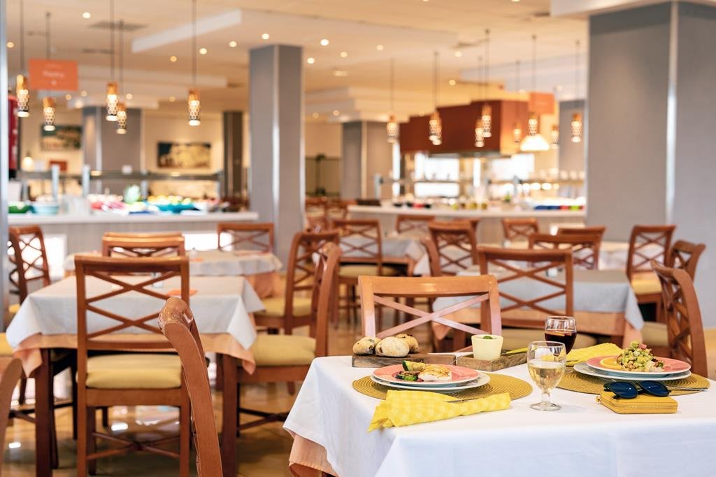 All Inclusive, onbezorgd genieten, Smullen van een wereldbuffet, Zo op het strand van Es Canar, Fit en fun voor jong en oud, Het personeel staat voor je klaar, Basic, modern hotel & inclusief transfers.