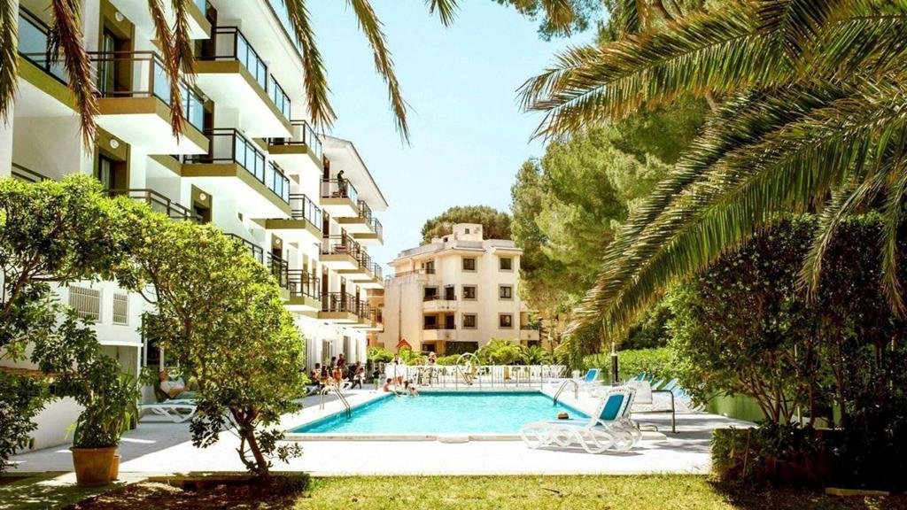 2 zwembaden: binnen en buiten, Buffetrestaurant en poolbar, Gratis wifi in het hele hotel, Gym en sauna voor je reset, Vernieuwd 3-sterrenhotel, Dicht bij strand Cala Agulla & inclusief transfers.